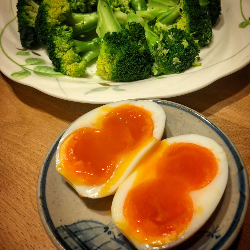いただいた卵で昨日作ったトロトロ半熟ゆで卵が双子だった。
