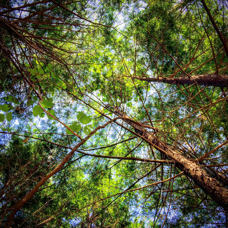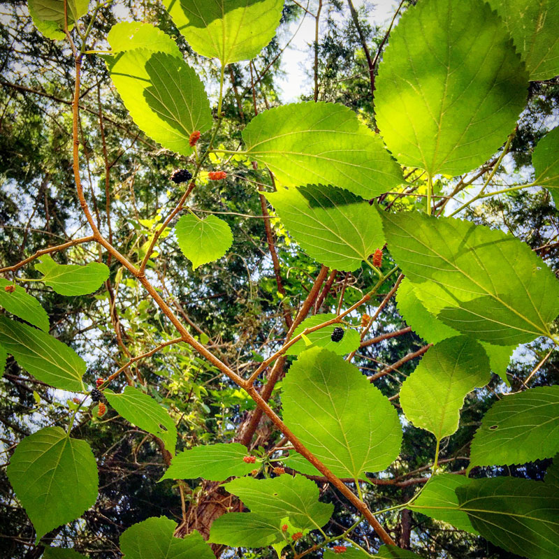 午後の仕事に行く前に、家の裏のお気に入りの木を下から見上げる。