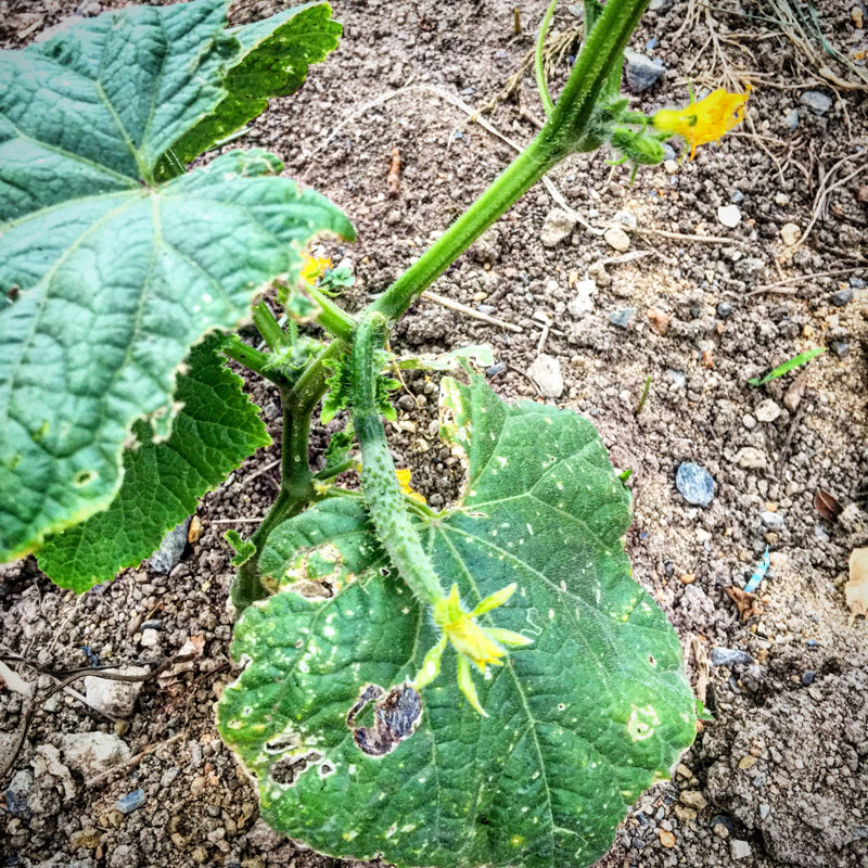 10~15cmで食べちゃうのが大好き、きゅうり。ちょっともったいないけどね、美味しさが全然違う。自分の畑ならでは。あんまり売ってないから(そりゃそうだ、まだまだ大きくなるのに小さい時に売ったら損だ)。朝、収穫のタイミングを見逃すとヘチマみたいに大きくなるけど、それは食べない。美味しくない。
