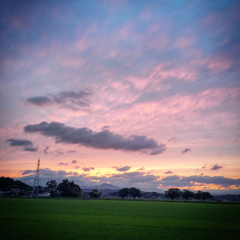夕食に蕎麦を茹でていたら「すごいよー」とカミさん。茹でていた蕎麦を放ったらかして iPhone 6 Plus もって家の裏の田んぼへ。妖しくてちょっとドキドキする夕焼けだった。