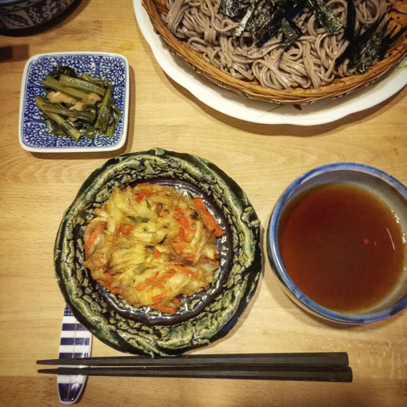 夏のような一日でした。氷で冷たく〆て夕食はざる蕎麦。ちゃんと蕎麦湯もとったよ。