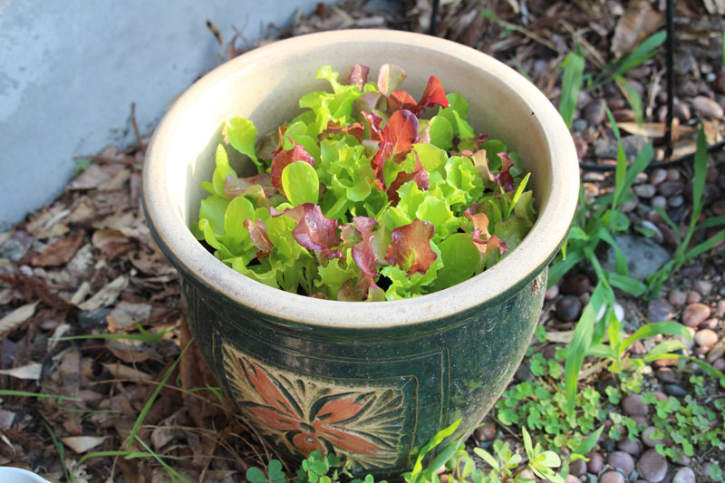 猫の額過ぎてスペースが無いので鉢で作ってるサラダ用の葉物5種。