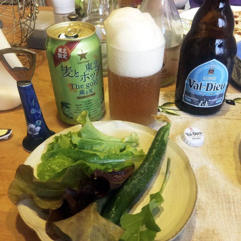栓を抜いたら泡が吹き出してきた。注いでも木目の細かい泡で一杯。そしてその泡がいつまでも減らないので飲むことが出来ず、麦とホップをゴクゴク飲みながら(笑)泡が落ち着くのを待って飲んだ。フルーティーで爽やか。ベルギーぽいビールでした、