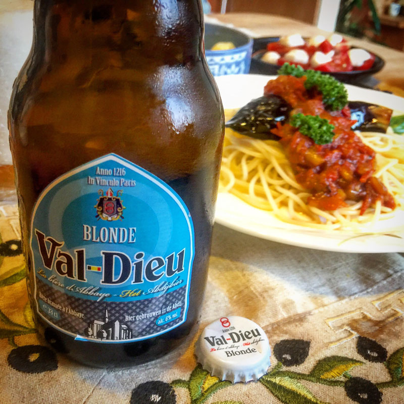 今宵の一杯目はベルギーのビール「ヴァルデュ ブロンド」。やまやで賞味期限近くて半額になってた・笑