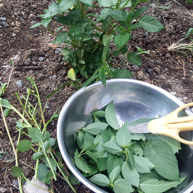 庭の猫の額畑のモロヘイヤ。今宵スープにします。