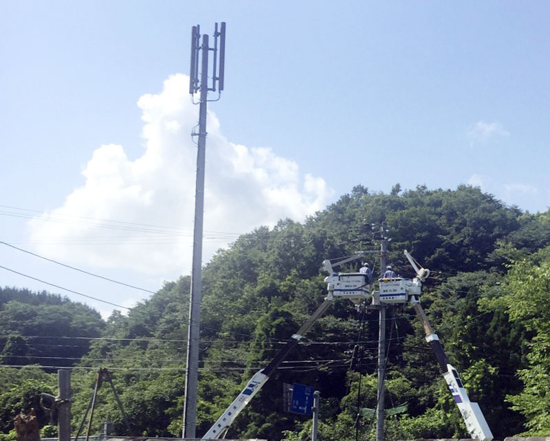 仕事場入り口の電柱のトランス入れ替え工事。作業前にふたりの方から「作業させていただきます、よろしいですか?よろしくお願いします」。重機や誘導の旗振りの方の車を仕事場の中に停めていいですよと言った後、作業始まると「これから、作業させていただきます、よろしくお願いします」作業が終わると「お世話になりました、ありがとうございました!」