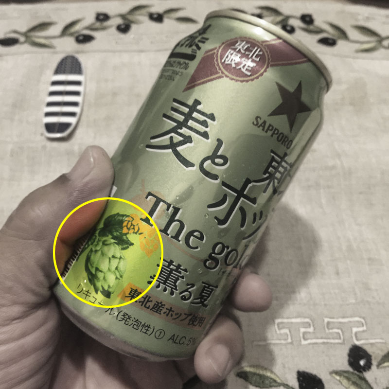 @edamamet818kaorin さんが描かれたホップのイラストが缶のデザインに使われている「サッポロ 麦と東北のポップ The Gold 薫る夏」。