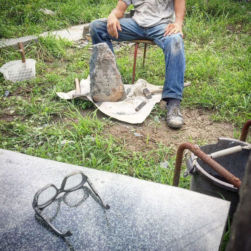 今、彫ってる石は仕事場のテーブルにしている石。磨くと緑色の石。もう採石されていないので欲しくても買えない。でも、僕の仕事量なら一生分、在庫あるけど・笑