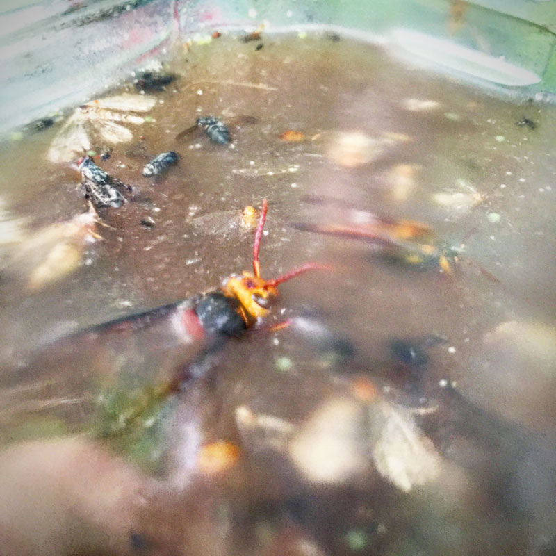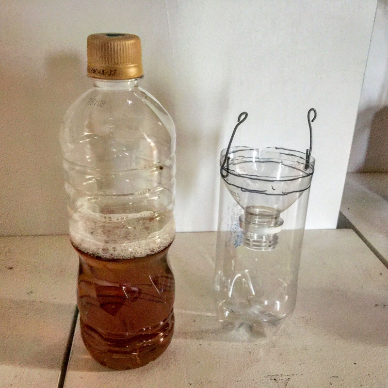 最近、仕事場の捕獲機にスズメバチがどんどんかかるので、追加の誘引剤ともうひとつコンパクトな捕獲機作った。