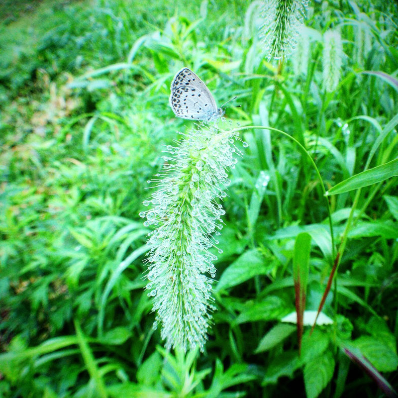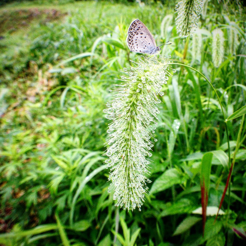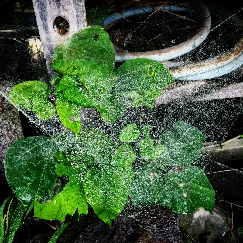 雨の日も良い事はある。雨に濡れた蜘蛛の巣や植物を見るのもそのひとつ。