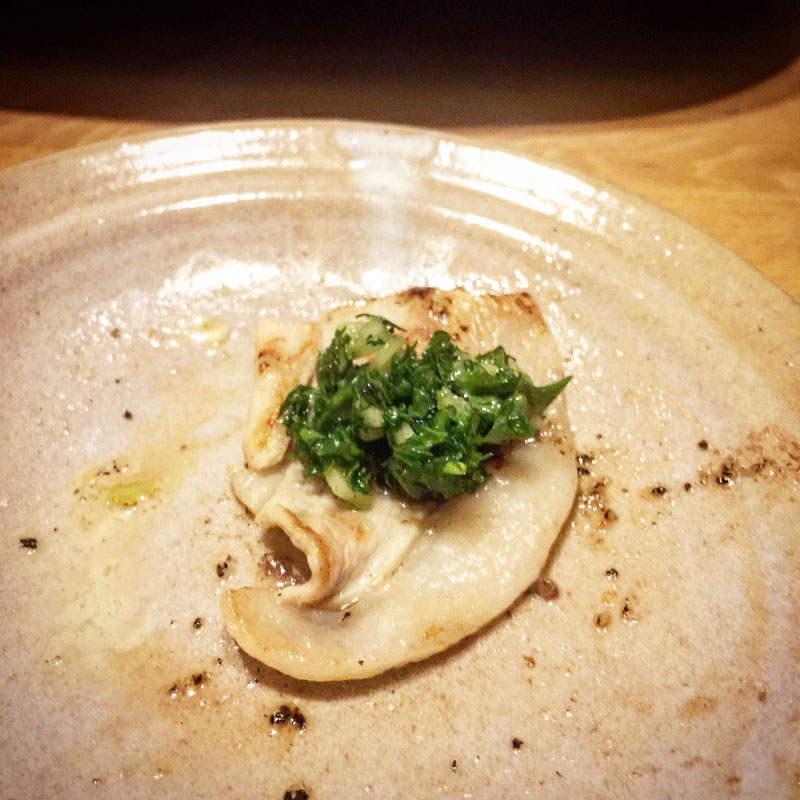 Norikaさんのレシピのアレンジ。焼いた茄子に、パセリとニンニクのみじん切りをエクストラヴァージンのオリーブオイルで和えたものを乗せて。