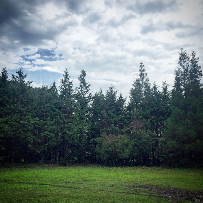 雨の降っていない仕事場。厚い雲の隙間にうっすらと青い色が見えるところも。ツバメ達が元気に飛びまくってる。