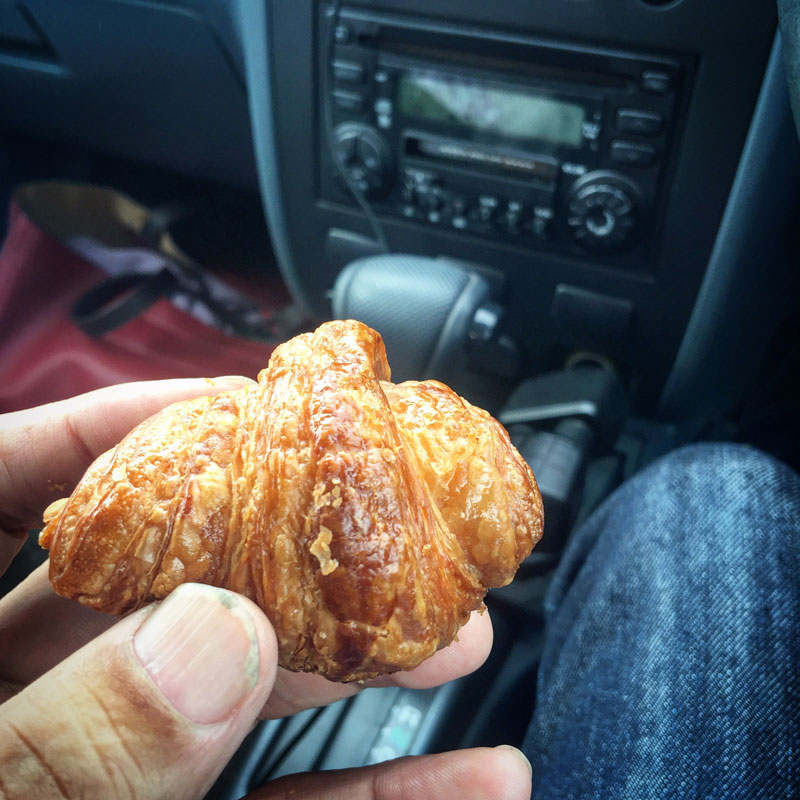 羽生SAで定番のミニクロワッサンと初めて買ってみたカヌレ。鏡石PAでちょっと休憩。