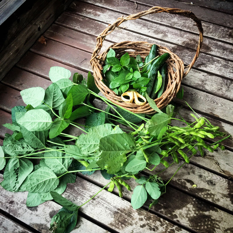 22日連続雨の東京からわ26日連続雨の宮城へ。畑のキュウリは小さいのも収穫して実家に持って行ったので、ヘチマ大になってしまったものは無かった、良かった。まだまだ未熟だけど、だだちゃ豆の初物いただく。