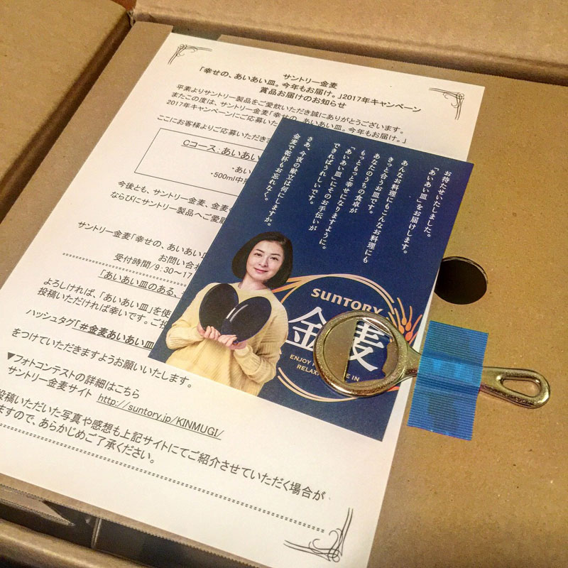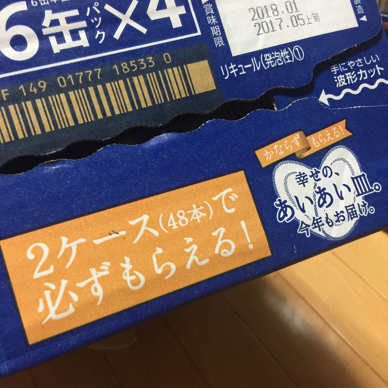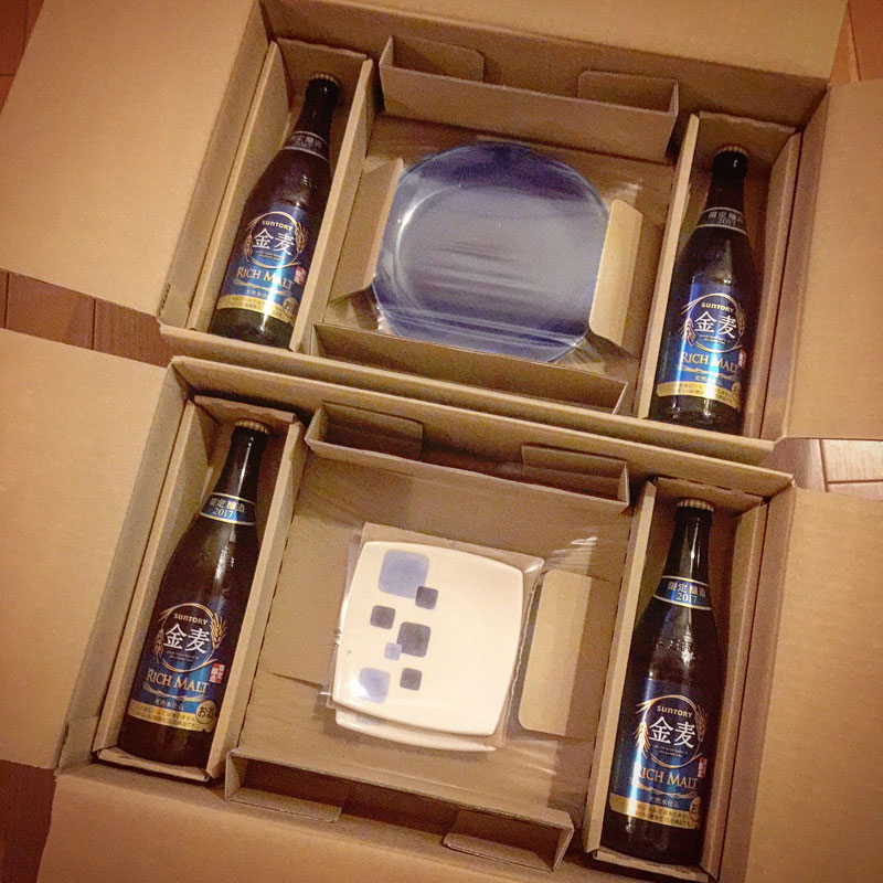 瓶入り金麦ゲット!って抽選で当たった訳ではなくて2ケース買えば必ずもらえるのです。お好みのペアのお皿が。