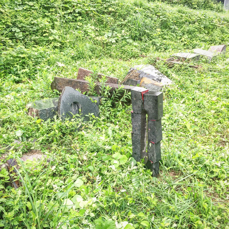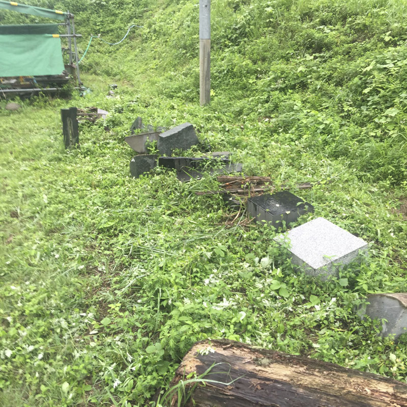 こういうところは手刈りの方が良い。初めて見た人はまだ石が草に飲み込まれてるように見えるでしょうが(苦笑)やる前は全てが草に覆われていた。今日は雨だけど晴れれば刈った草が枯れて地面に落ちるだろう。