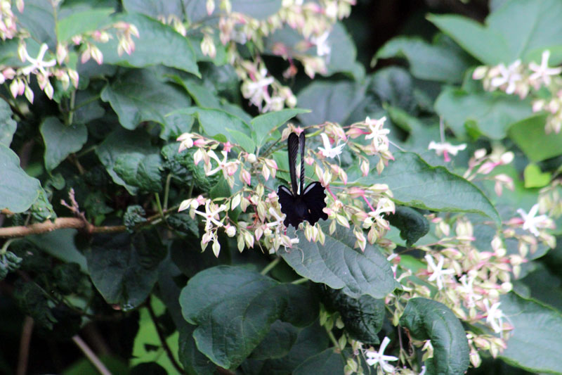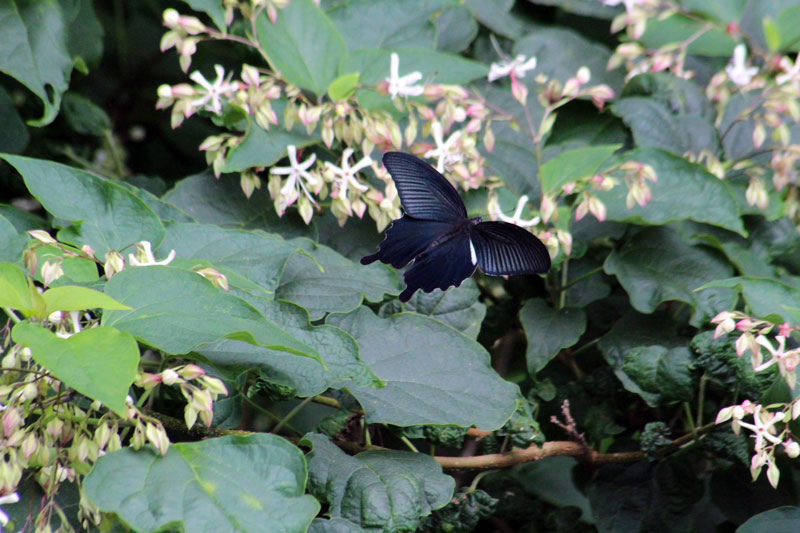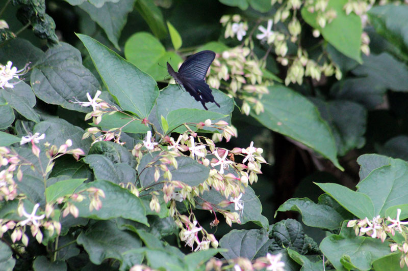 今朝はこんな黒いアゲハチョウが盛んに蜜を吸っていた。