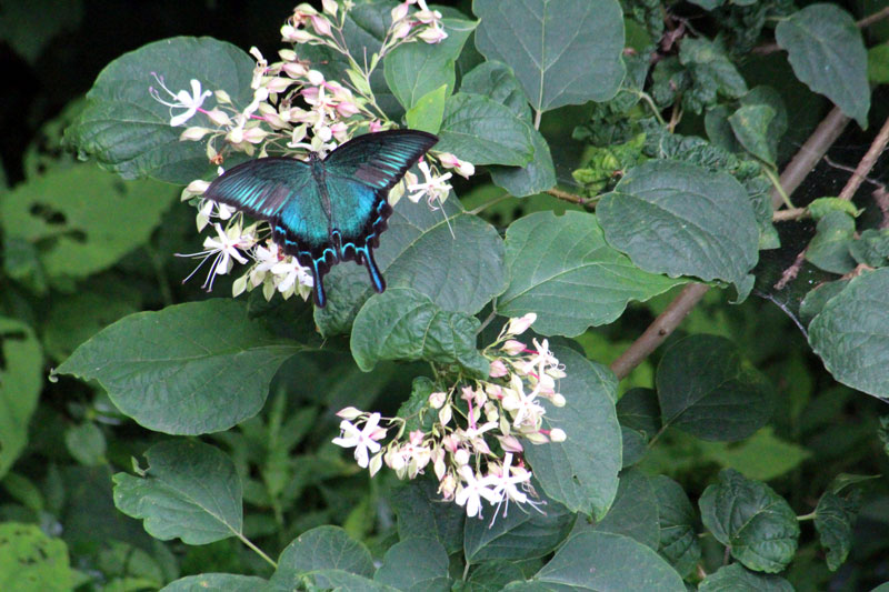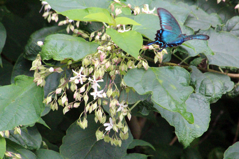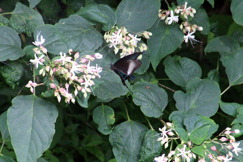家の裏にいろんなアゲハチョウが集まる木の花がある。