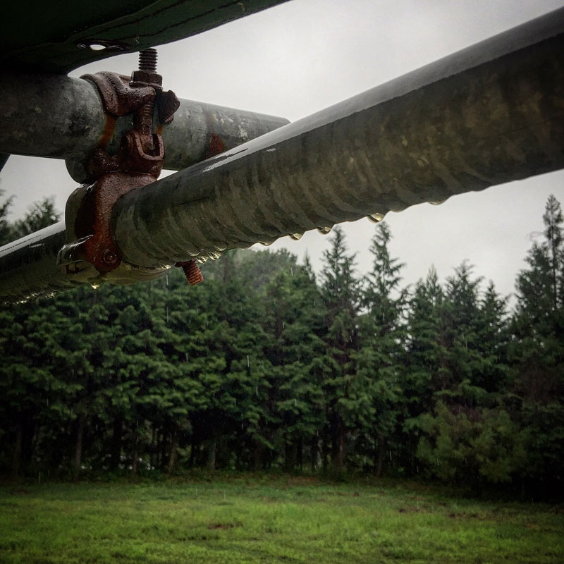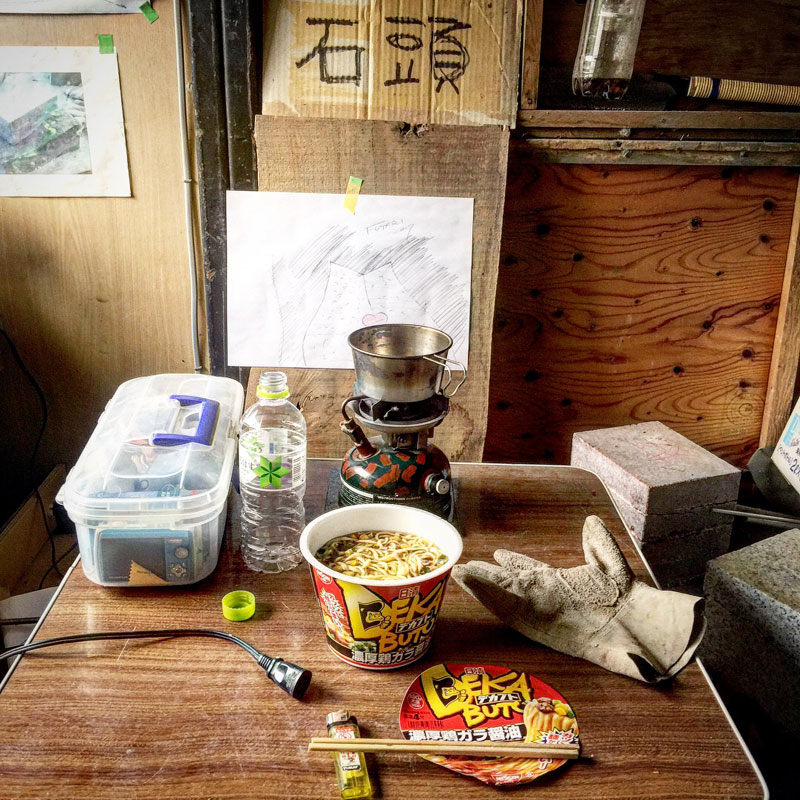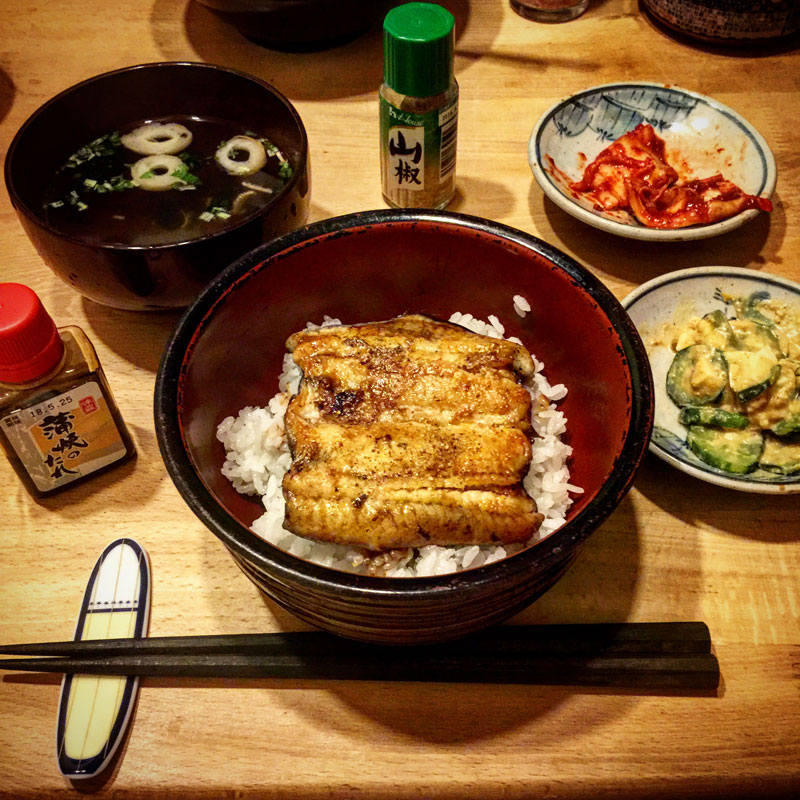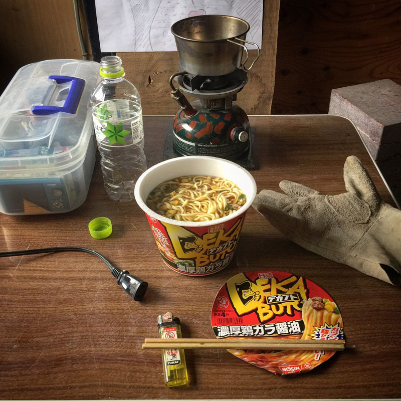 また雨 再び、雨の仕事場。 雨に濡れるテントの足場パイプ。 テントに落ちる雨水を貯めたドラム缶。 いつも靴下が濡れてる。 時間が無い。 仕事場のプレハブ小屋でジャンクランチ。 せめて、屋外の石テーブルで食べられればこんな昼飯でも幸せなんだけど。 道具や自分が濡れるのを気にしてなんだか今月は難産だった。集中力をそがれるし。 両親の友人が捕まえて池で大きく育てたという「国産」のうなぎでうな丼をいただきました。国産のうなぎなんて贅沢。ごちそうさまでした。 2017年8月30日 | コメントはまだありません | カテゴリー: 三日坊主日記
