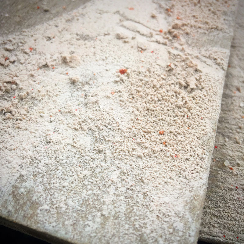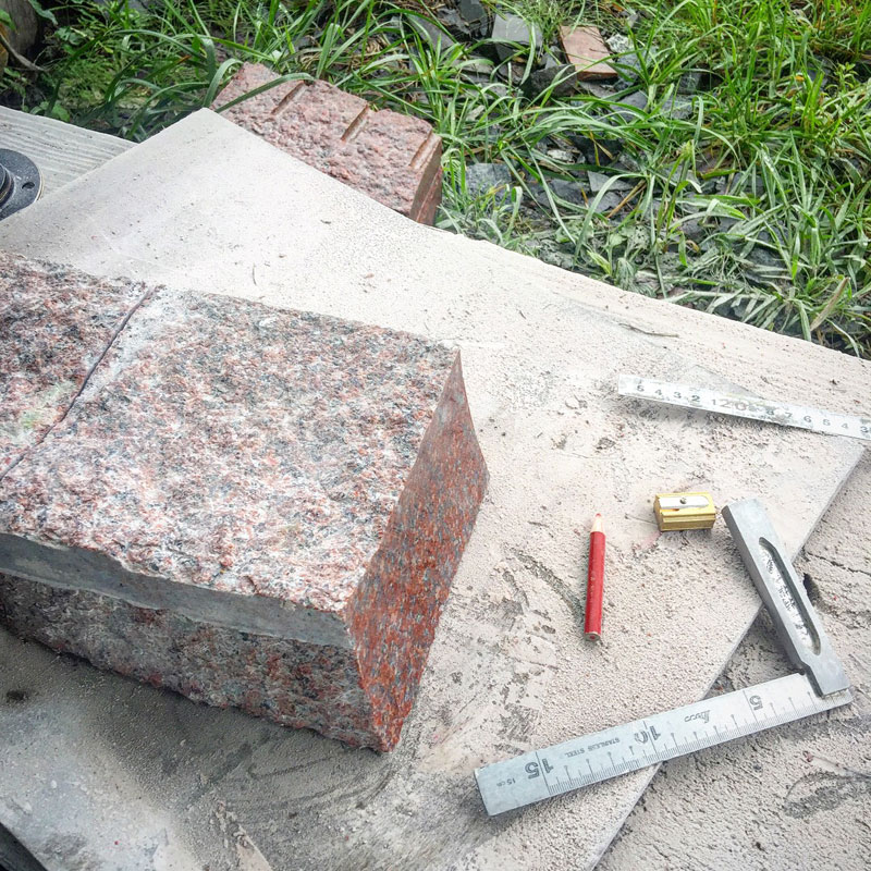 赤御影石を削って出た粉も赤い。まあ、当たり前と言えば当たり前なんだけど。