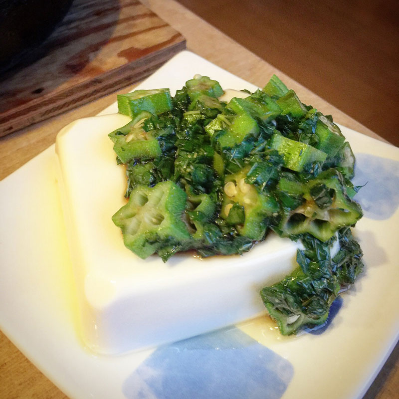 モロヘイヤとオクラの冷奴。