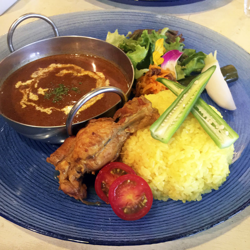白川さんの個展「青い鳥はここにいる」にかけて青いガラスの器で(普段は白いお皿だそうです)