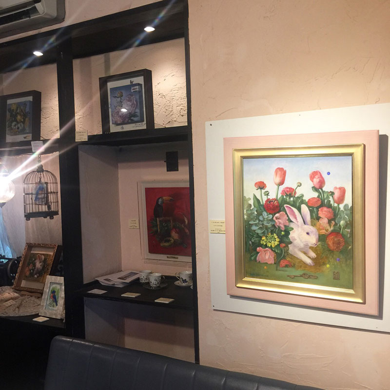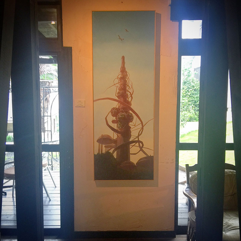 とりあえず座る席を決めたら、て店内に飾られている白川さんの作品を鑑賞。