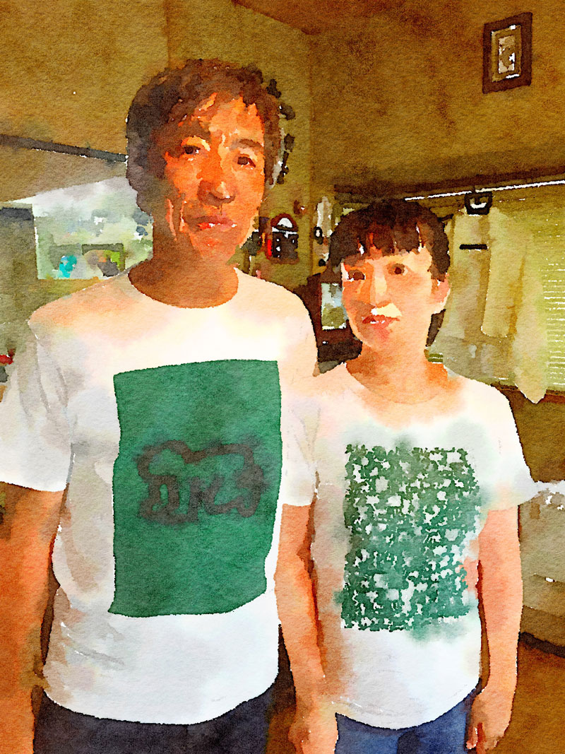 今日のTシャツはどちらもキースヘリングでカミさんとペア。