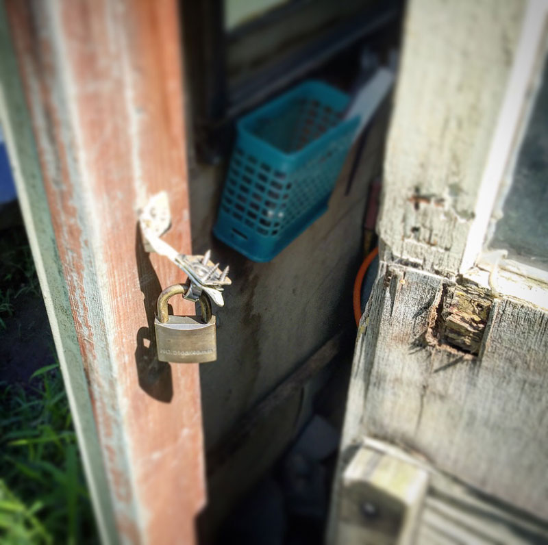 鍵をかけてあった蝶番を無理やり引き抜いて。プレハブ小屋に侵入しようと思えば素人だって簡単だ。薄い窓ガラスを割るだけでいい。頑丈な建物を建築する以外に対処の方法はないよ。