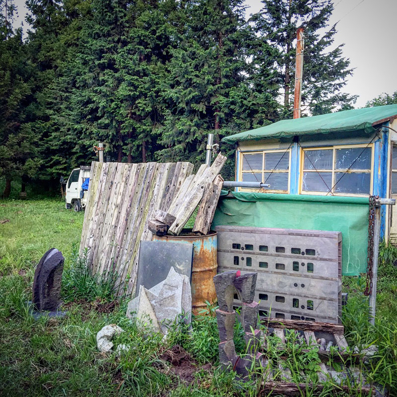 ただ、泥棒さんにとっては石屋の道具は魅力的では無かったようで、プレハブ小屋の中の石彫の道具は何ひとつ取られてませんでした(たぶん)。完成間近の大切な作品も。屋外の仕事場に飾っている大小様々な石彫の作品も。ま、重いけど。