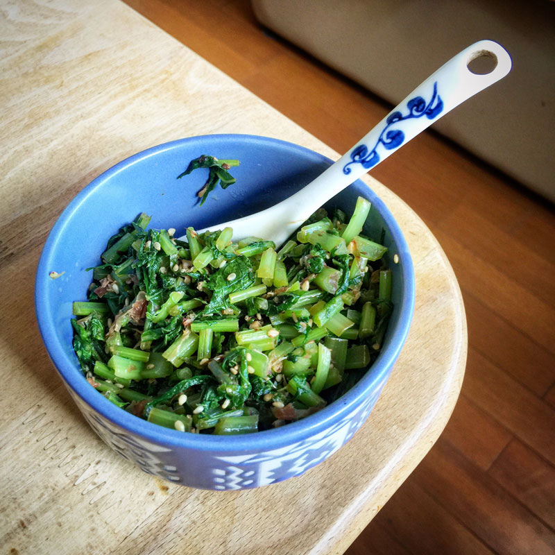 昼食に大根葉。大根葉の季節だなぁ。大根より大根葉の方が好きだ。
