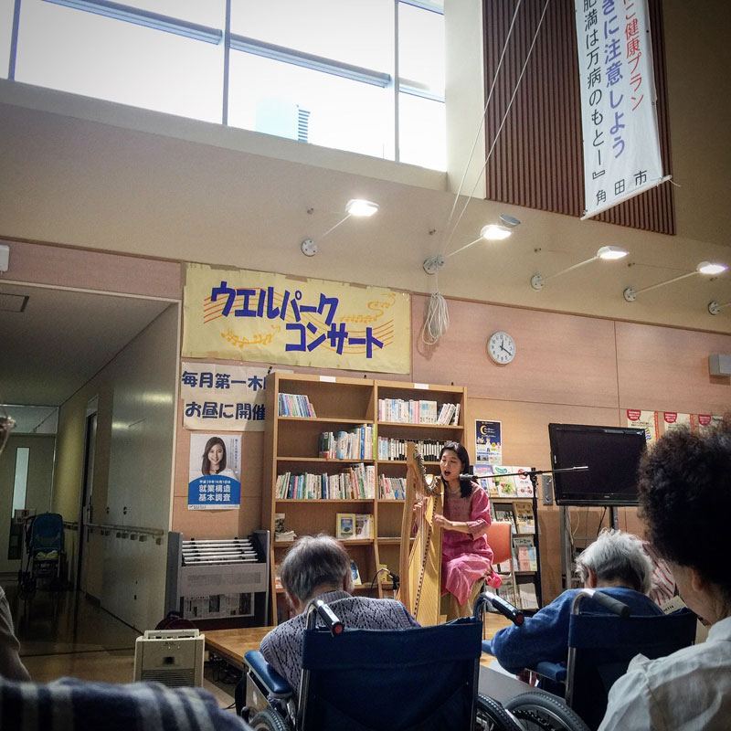 仕事で時間がすごくタイトだったんんだけ駆けつけて、5曲だけ聴いてきた。月の輪まり子さんのアイリッシュ・ハーブの演奏。今日は雨だったけどまり子さんはこんな風に話した。「私が12年間アイリッシュ・ハープを学んだアイルランドは、毎日こんな天気で、だからアイリッシュ・ハープにはぴったりの天気なのですよ」雨でも駆けつけた僕らはもうこの一言でぐっと来てしまうね。