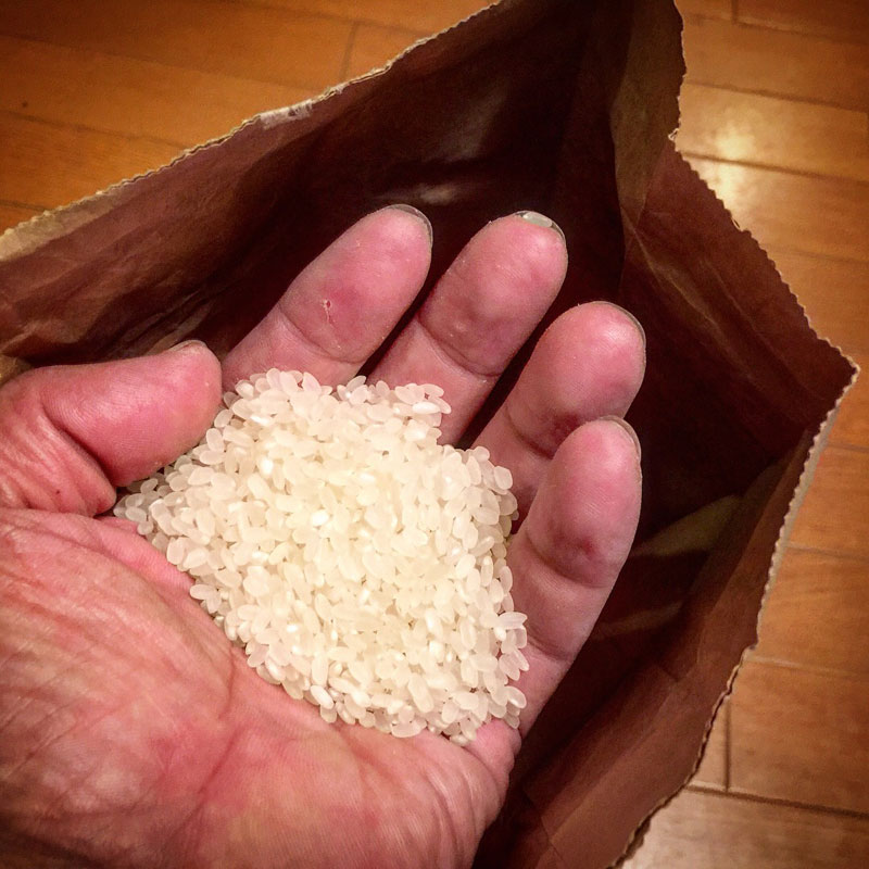 新米 2017 稲(げんきまる)#庭の一畳田んぼ コールラビ #庭の猫の額畑 大根 #庭の猫の額畑 今日の日暮れどき。 おととい刈ったばかりの新米をいただきました。 今年の寒い夏の中で実をつけた今年の稲。今年の天気がぎゅっと詰まったお米。 毎年、新米はおかず無しでいただいた後、 卵かけご飯でいただくのが恒例。 宮城で新米食べた人、農家を含めてまた、そんなにいないだろうに贅沢でありがたい事です。ごちそうさまでした。 2017年9月15日 | コメントはまだありません | カテゴリー: おいしい