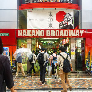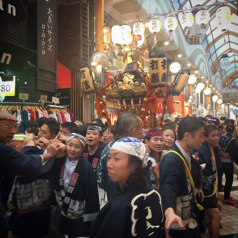 その頃、中野ブロードウェイはもっと静かな商店街だった。今や、ただでさえ人でいっぱいの中を御輿がやって来た。楽しそう・笑