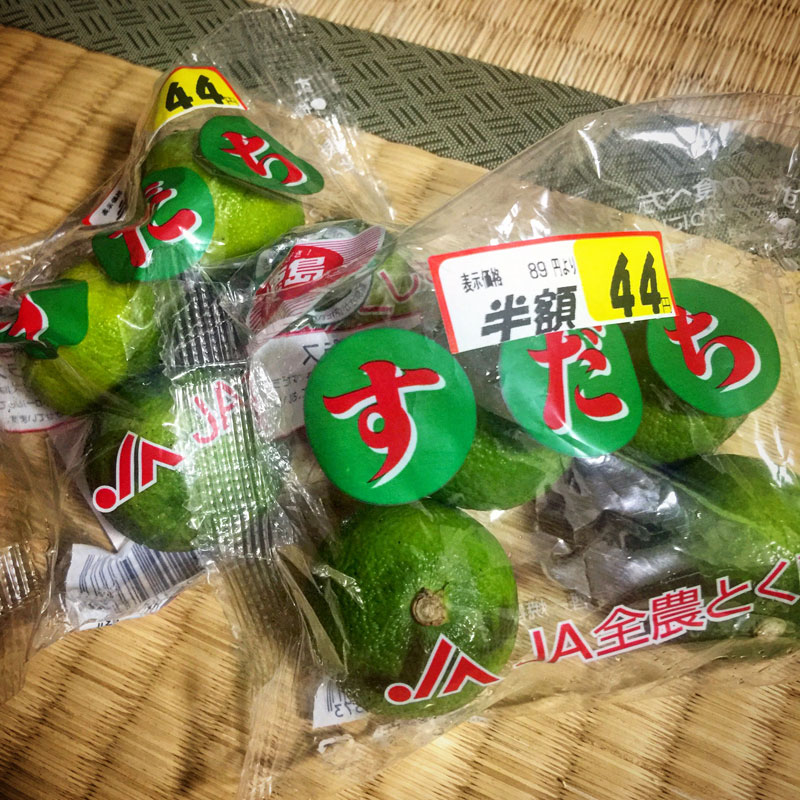 徳島のすだち売ってたので買って帰る。子供の頃、数年間徳島に住んでいた時は何にでもかけていたけど、宮城では買う事自体が難しくて悲しい。帰ったら美味しい赤出汁の味噌汁作ってすだち搾ろう。八丁味噌の味噌汁+すだち=大好物なんである。
