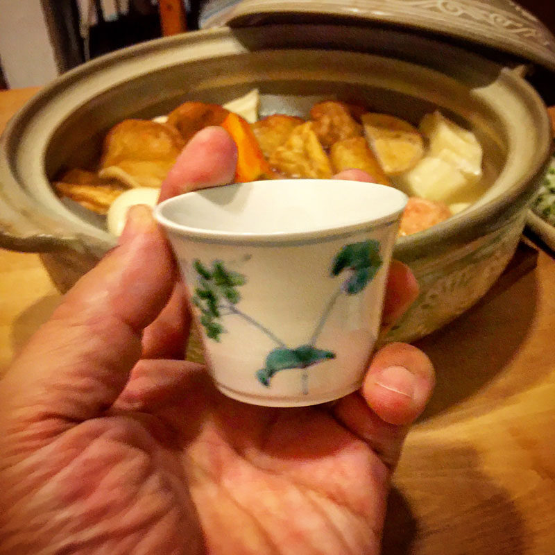 ミュゼマエナカの前仲万里子さんの器。日本酒やちょっとワインを飲む時にお気に入り。軽くて繊細で絵付けが綺麗で。(老眼でピンぼけに気が付かなかった!)