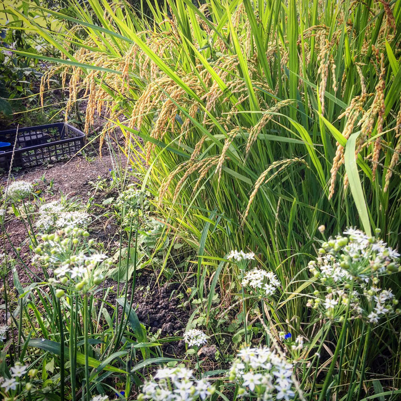 いつ刈り取ったらいいか楽しみな、我が家の庭に作った田んぼ。げんきまる、という品種。#庭の一畳田んぼ #庭の猫の額畑