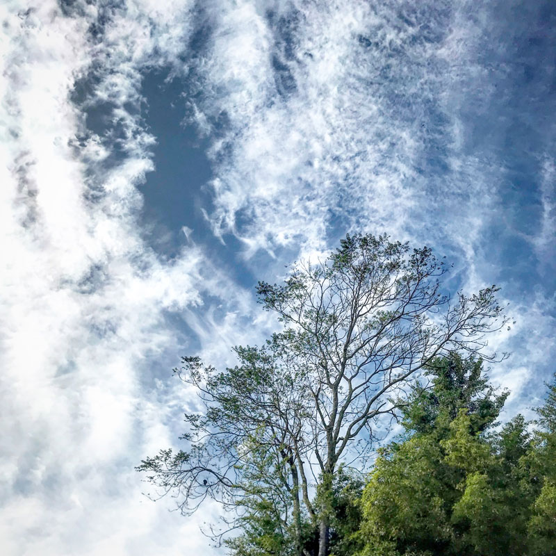 庭の木と朝の空。