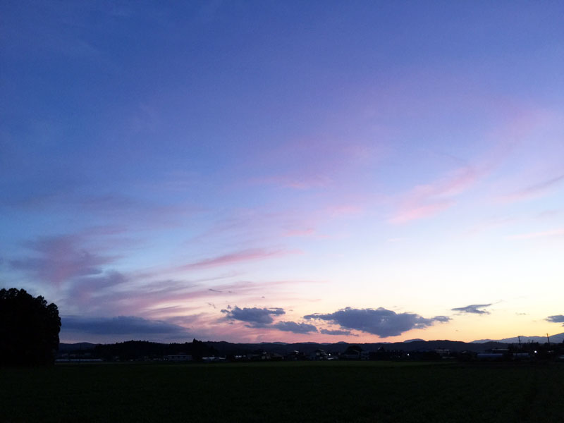 夕焼け 20170904 今日は朝から一日、豆畑の草取りでした。暑い暑い! 稲刈りに備えて田んぼの水抜きも。 きれいな夕焼けも豆畑から眺めました。今年から農繁期は百姓仕事。モノツクリと二足のワラジ。もう少しでいよいよ稲刈りが始まる。 2017年9月4日 | コメントはまだありません | カテゴリー: 田舎暮らし