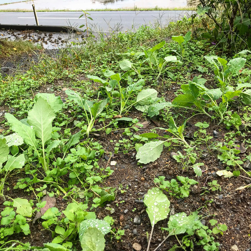 畑のコールラビがちょっと心配。強い雨に打たれすぎて半分くらいダメになるかも。