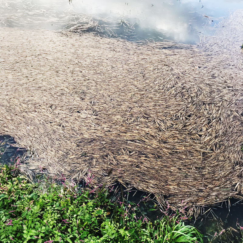 稲刈りの後、田んぼに残された稲藁。まるでアートに見える。