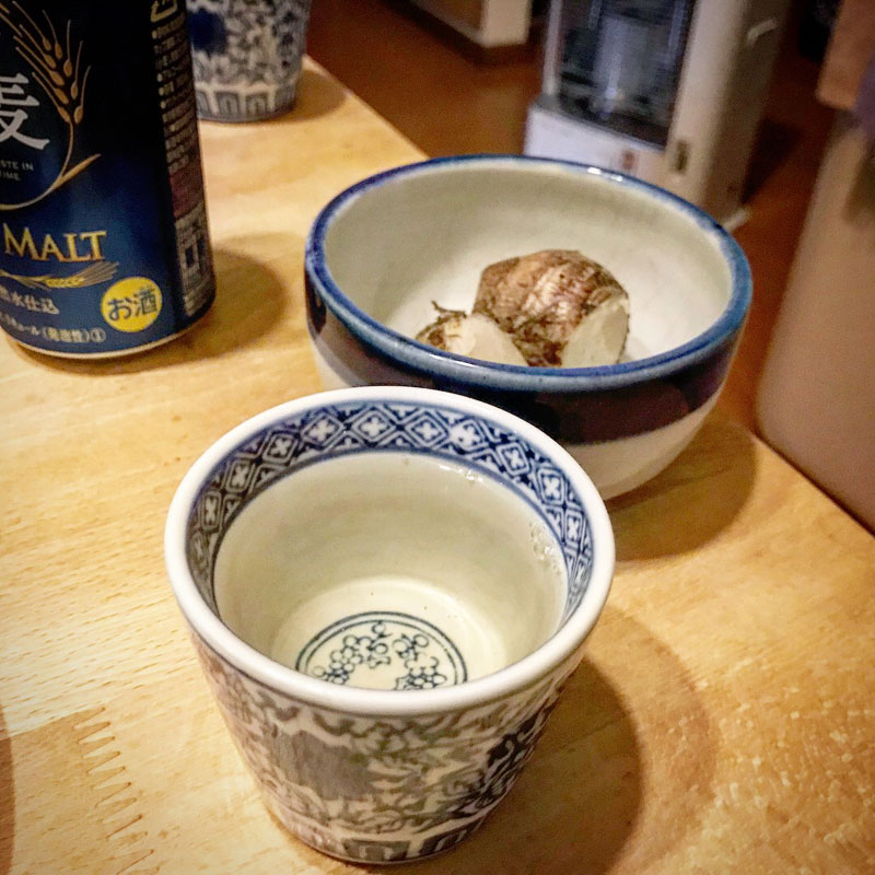 蔵王の三田さんの野菜やトロトロのきぬかつぎ。休肝日なんだけど食事の間だけ一杯いただきます。