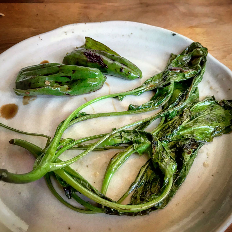庭の畑から間引いてきたコールラビとまだ頑張っているピーマン炒めて、昼食のおかずの一品に。#庭の猫の額畑