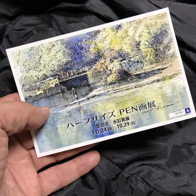 ギャラリー専 で柴田治さんの水彩画展「ハーフサイズPEN画展」を見る。