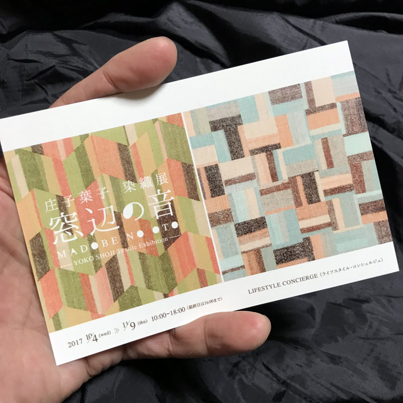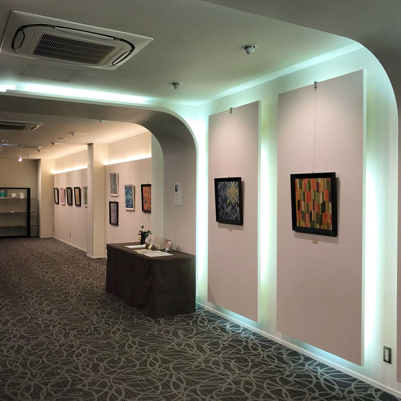 今、アートスペースでは、庄子葉子 染織展 「窓辺の音」が開催されています。染め織りを四角く構成して額装して展示されていました。11月9日(木)まで(※最終日は16:00まで)