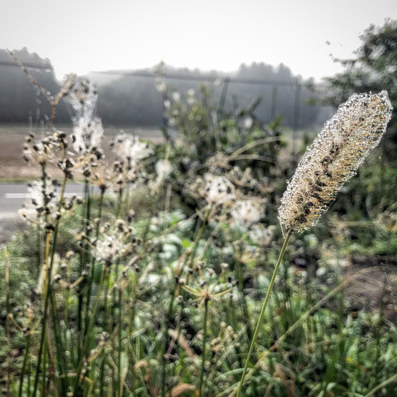 蜘蛛と植物と朝靄のコラボレーション。#庭の猫の額畑