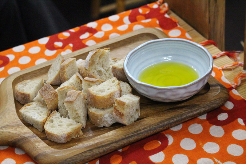 パレスチナ・オリーブのオリーブオイルをパンにつけていただいた。