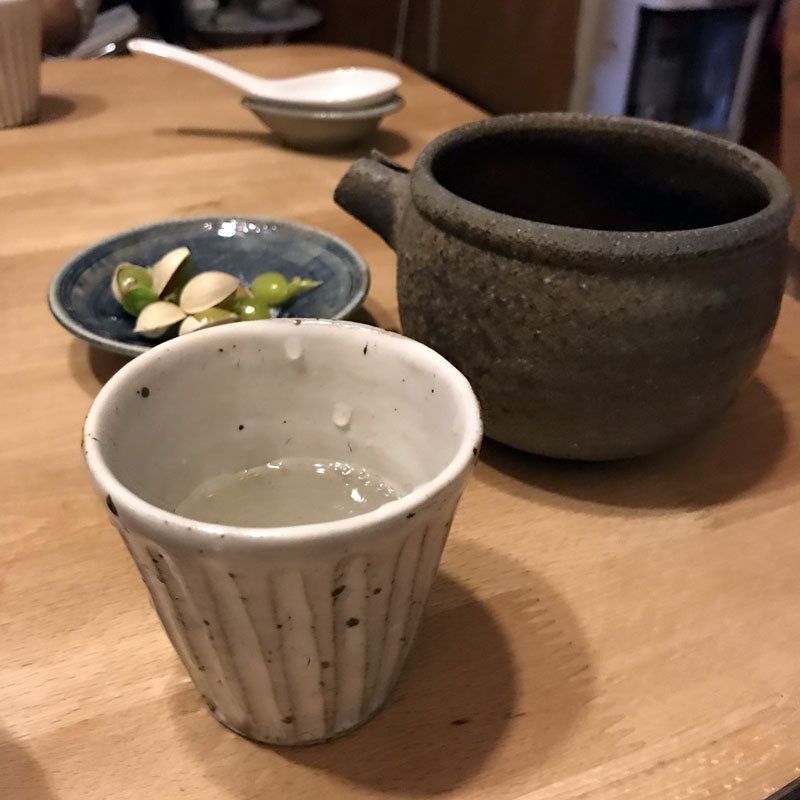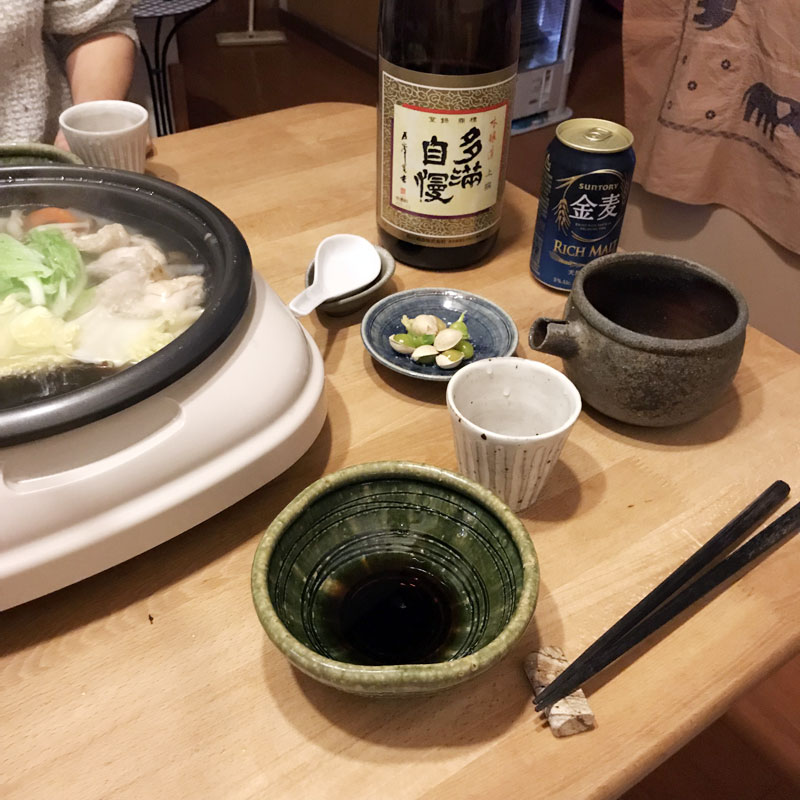 今夜は鍋。池田さんの織部の器。