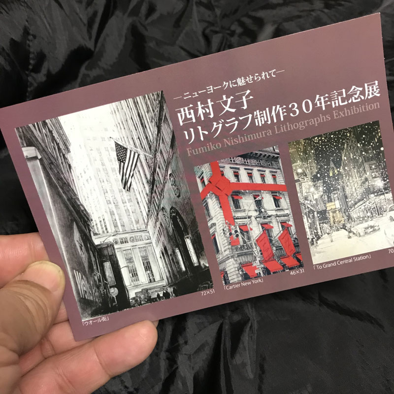 次回は西村文子さんのリトグラフ展だ。次々に企画展を開催するこのギャラリーで初めて知った作家は数え切れないけど、この方もそんな作家のひとり。今ではファン。