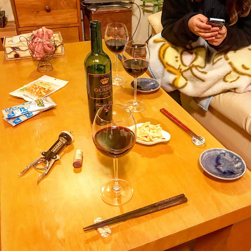 持ってきてくれたワインで、我が家で続き。お喋りが刺激的。なんかいろいろ教えられるな。ついこの間まで子どもだったのになー。